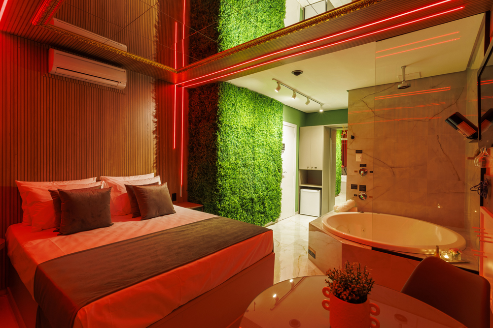 Sensualidade com o contemporâneo é uma mistura que faz da Madero única. Desfrute do enorme espelho no teto para fazer sua imaginação voar. O chuveiro integrado à hidro dá liberdade ao ambiente, tornando o momento mais livre e sensual.