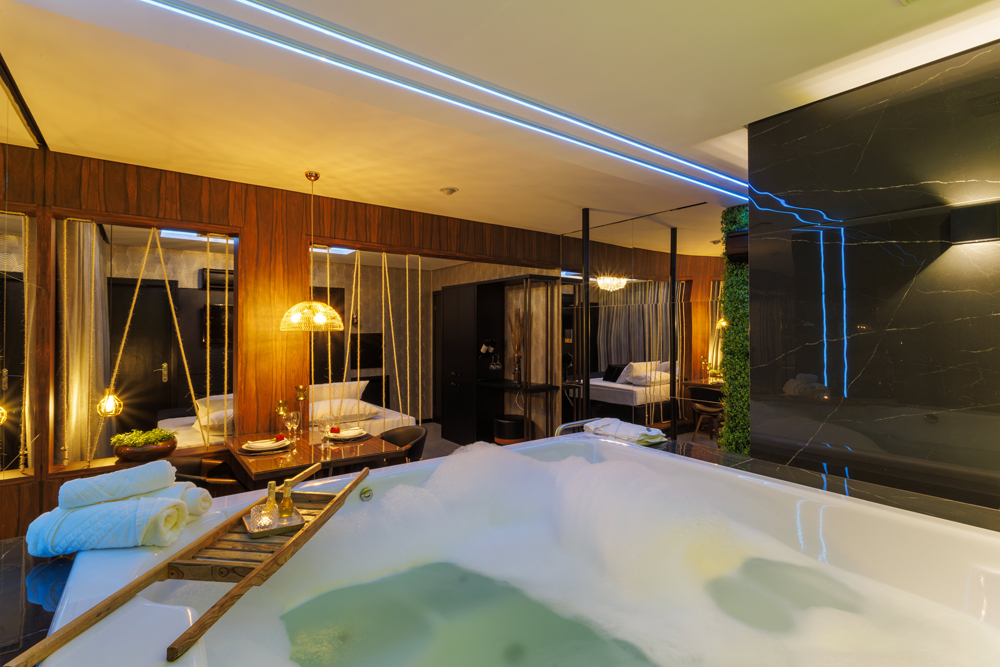A SPA de 1.500 litros, acompanhada por uma ampla TV exclusiva, transforma o momento de relaxamento em uma experiência ainda mais envolvente.